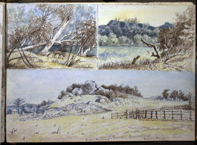 Albert’s surname can be deduced from entries in The Queenslander between 1893 and 1905 concerning members of the Brook family, “of Pencraig, Bowen”. Mrs A Brook, mentioned in 1893, must surely have been Albert’s wife. Bowen cemetery records list Albert Brook (1835-1900), husband of Ellen Marion and father of Edith and William, both of whom died in infancy in 1870 and 1871.